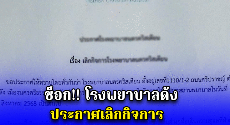 ช็อก โรงพยาบาลดัง ประกาศเลิกกิจการ