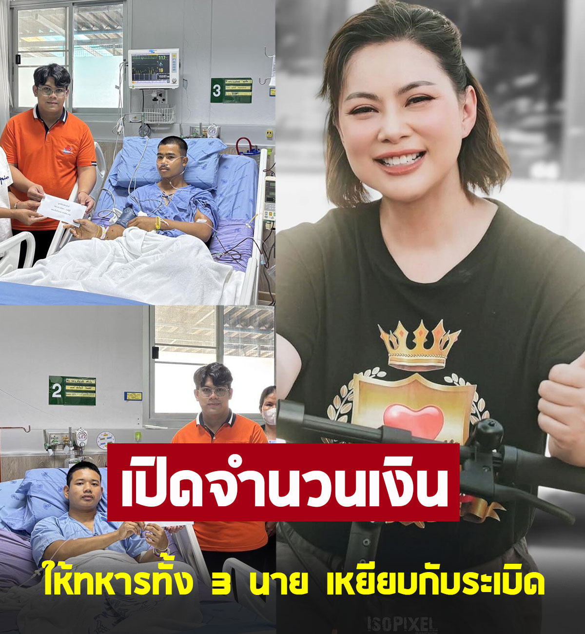 ที่เหยียบกับระเบิด ขณะลาดตระเวนช่องบก บุ๋มขอมอบเงินให้รายละ 10,000 บาท และขอเป็นกำลังใจให้กับเจ้าหน้าที่ทหารที่ปฎิบัติหน้าที่ทุกนายค่ะ