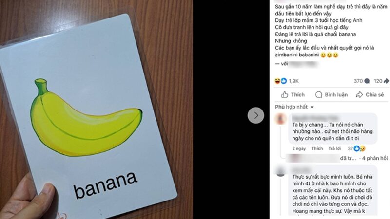 โดยคุณครูเล่าว่า วันหนึ่งขณะที่เธอกำลังสอนคำศัพท์ภาษาอังกฤษเด็ก เธอได้หยิบกล้วยแล้วชูขึ้นมาถามว่า “นี่คือผลไม้อะไร?” งานนี้เด็ก ๆ กลับไม่ตอบว่า banana แต่พร้อมใจกันตอบว่า zimbanini babanini แบบมั่นใจสุด ๆ