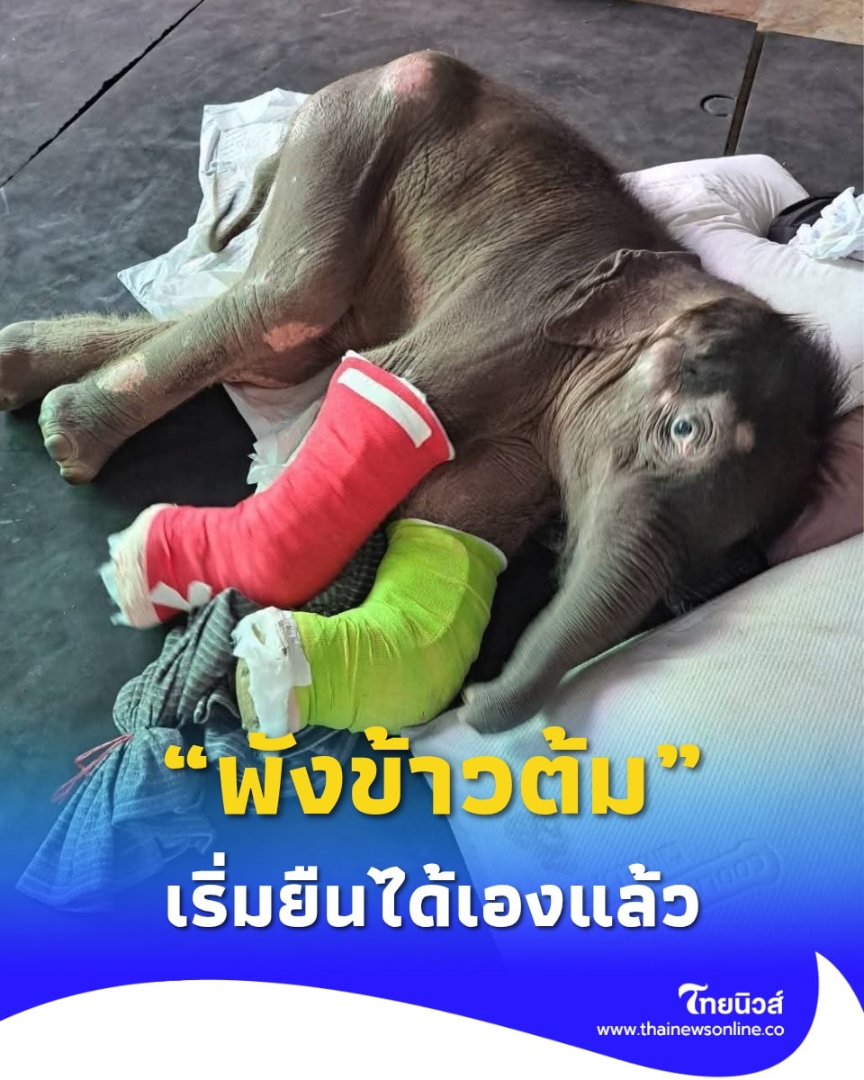 เมื่อวันที่ 16 ตุลาคม 2568 ทีมสัตวแพทย์ผู้ดูแล ลูกช้างป่า “พังข้าวต้ม” รายงานความคืบหน้าอาการล่าสุดว่าอยู่ในทิศทางที่ดีขึ้นอย่างต่อเนื่อง โดยเฉพาะการพยายาม พยุงตัวลุกขึ้นยืนเอง ถือเป็นสัญญาณสำคัญของการฟื้นตัว