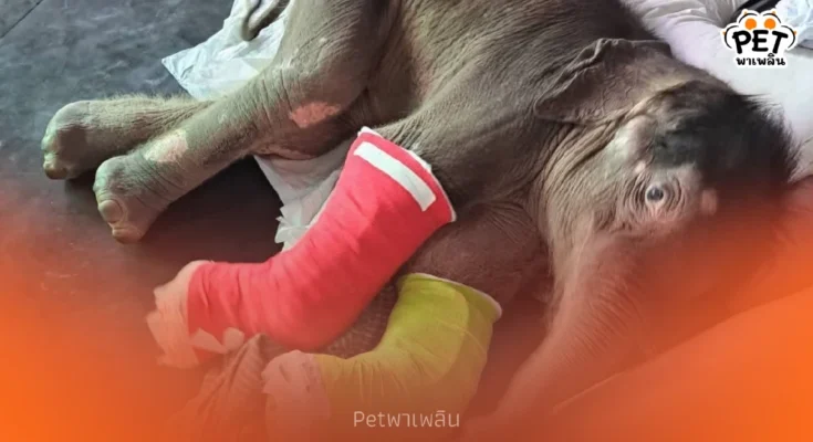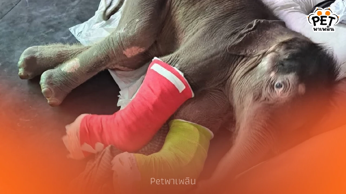 “พังข้าวต้ม” ลูกช้างป่าพลัดหลง ฟื้นตัวดีต่อเนื่อง ทีมสัตวแพทย์เผยเริ่มยืนได้เองแล้ว
