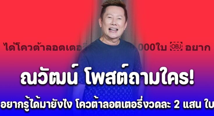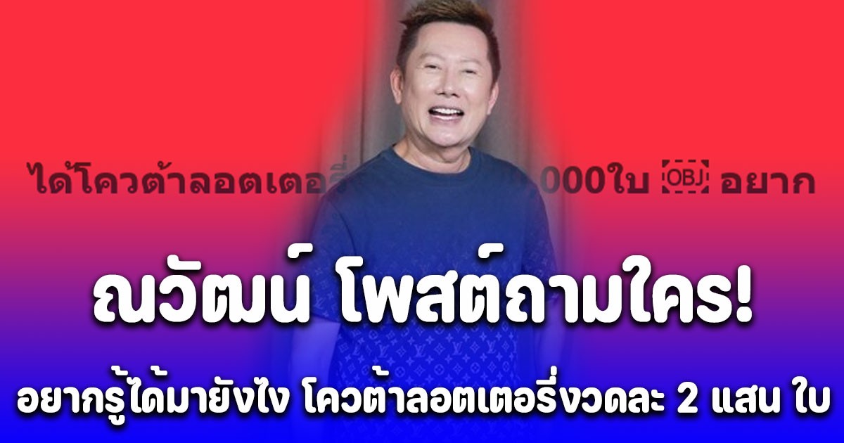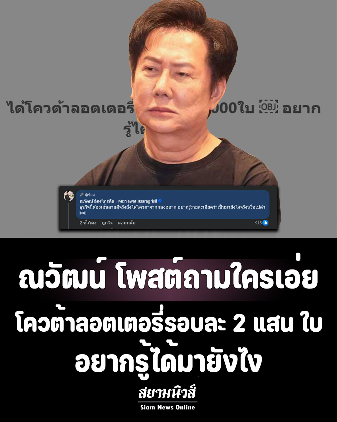 งานนี้ทำเอาโซเชียลแห่คอมเมนต์กันสนั่น หลัง บอส ณวัฒน์ ได้โพสต์ข้อความลงบนเฟซบุ๊กชื่อ ณวัฒน์ อิสรไกรศีล – Mr.Nawat Itsaragrisil ระบุว่า ได้โควต้าลอตเตอรี่งวดละ200,000ใบ อยากรู้ได้มายังไง