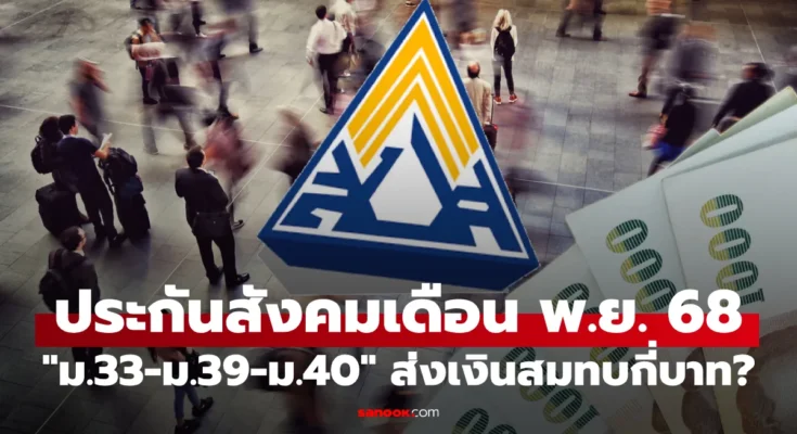 ประกันสังคม เดือนพฤศจิกายน 2568 ผู้ประกันสังคม ม.33-ม.39-ม.40 ส่งเงินสมทบกี่บาท