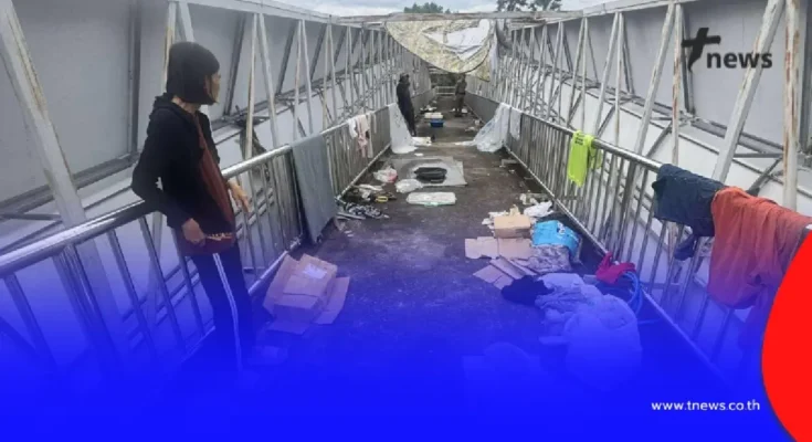 “มีบุคคลไปกางเต็นท์อาศัยอยู่บนสะพานลอยหน้าวัดประชุมคงคาราม (วัดน้ำพุง) ต.หล่มสัก อ.หล่มสัก จ.เพชรบูรณ์ ทำให้ไม่สามารถใช้สัญจรได้ โดยเฉพาะเด็กนักเรียนที่ต้องใช้สะพานลอยข้ามถนนประจำ ทั้งยังมีการตากผ้าและใช้พื้นที่เป็นที่พักอาศัยอย่างถาวร”