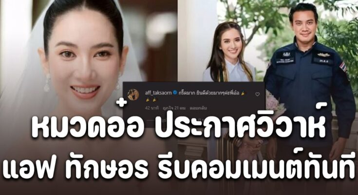 ท่ามกลางคอมเมนต์สุดยินดีโดยเฉพาะเพื่อนๆคนบันเทิงคนดัง ร่วมไปถึง แอฟ ทักษอร ที่เข้ามาแสดงความคิดเห็นว่า กรี๊ดมาก ยินดีด้วยมากๆค่ะพี่อ๋อ ซึ่งหมวดอ๋อ ตอบกลับด้วยว่า ขอบคุนค่าาา มาเปนเพื่อนเจ้าบ่าวด้วยน้าาา