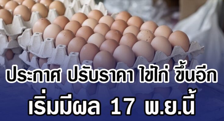 ประกาศ ปรับราคา ไข่ไก่ ขึ้นอีก เริ่มมีผล 17 พ.ย.นี้