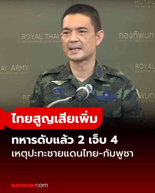 โดย พลตรี วินธัย สุวารี โฆษกกองทัพบก ได้อัปเดตเพิ่มเติมว่า ขณะนี้มีทหารไทยเสียชีวิตแล้ว 2 นาย ได้รับบาดเจ็บ 4 นาย