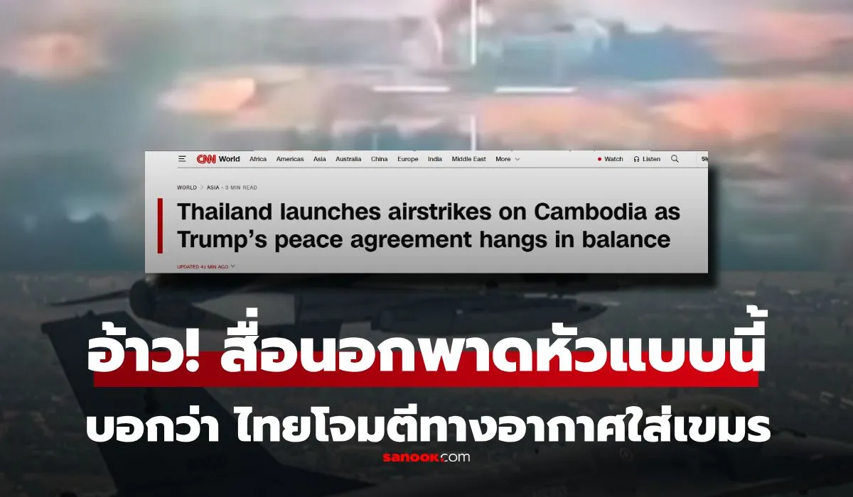 อ้าว! CNN พาดหัว “ไทยโจมตีทางอากาศใส่กัมพูชา” ข้อตกลงของ “ทรัมป์” ถูกแขวน