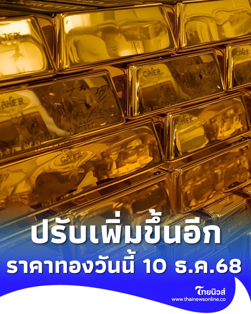 รายงานราคาทองวันนี้ประจำวันพุธที่ 10 ธันวาคม 2568 ประกาศครั้งที่ 1 (เปิดตลาด) เมื่อเวลา 09.03 น. ปรับตัวเพิ่มขึ้น 150 บาท สู่บริเวณ 63,500 บาท เมื่อเทียบกับราคาซื้อขายครั้งสุดท้ายของเมื่อวาน(อังคาร) ที่ระหว่างวันมีการประกาศราคาทองคำทั้งหมด 15 ครั้ง รวมราคาปรับตัวเพิ่มขึ้น 100 บาท สู่บริเวณ 63,350 บาท