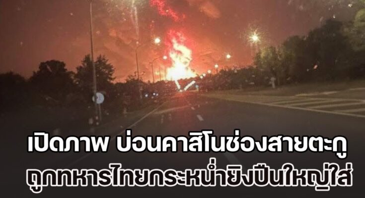 วันนี้ (11 ธ.ค. 2568) เพจเฟซบุ๊ก มังกร ซ่อนตัว ได้มีการเผยแพร่ภาพเพลิงปะทุอย่างรุนแรง บรอเวณชายแดนไทย-กัมพูชา พร้อมระบุข้อความว่า ไฟลุกท่วมกลางดึก! บ่อนคาสิโนช่องสายตะกู (สายตะกู-จุ๊บโกกี) อำเภอบ้านกรวด จังหวัดบุรีรัมย์ หรือชื่อเต็ม รอยัล ฮิลล์ โฮเต็ล & คาสิโน (Royal Hill Hotel & Casino) ถูกกระสุนปืนใหญ่ฝ่ายไทยกระหน่ำยิงตลอดทั้งคืน ส่งผลให้พื้นที่ได้รับความเสียหายอย่างหนัก บรรยากาศมวลเพลิงยังคงพวยพุ่งขึ้นท้องฟ้าอย่างน่าตระหนก