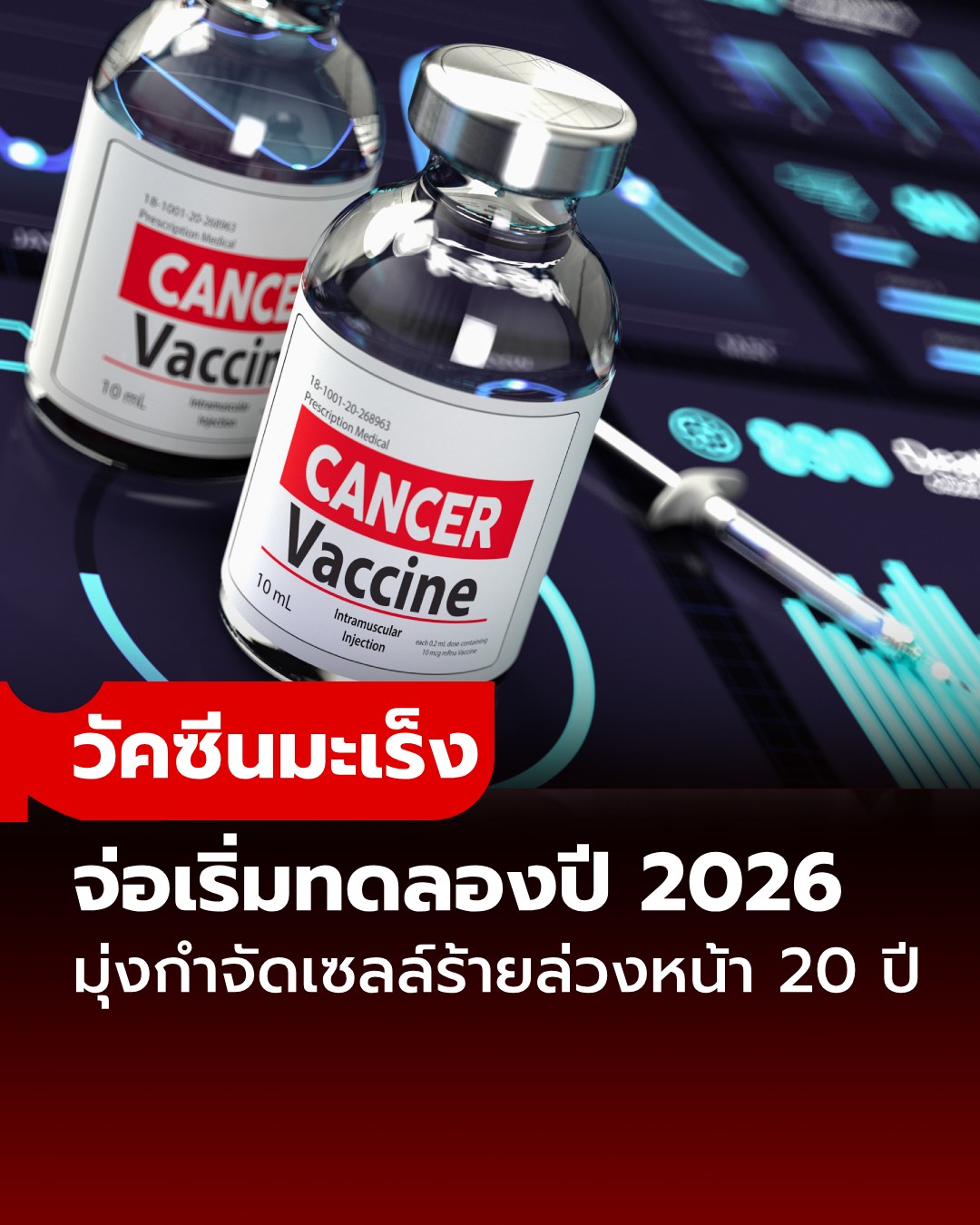 ข่าวดีมนุษยชาติ! “วัคซีนมะเร็ง” จ่อเริ่มทดลองปี 2026 มุ่งกำจัดเซลล์ร้ายล่วงหน้า 20 ปี