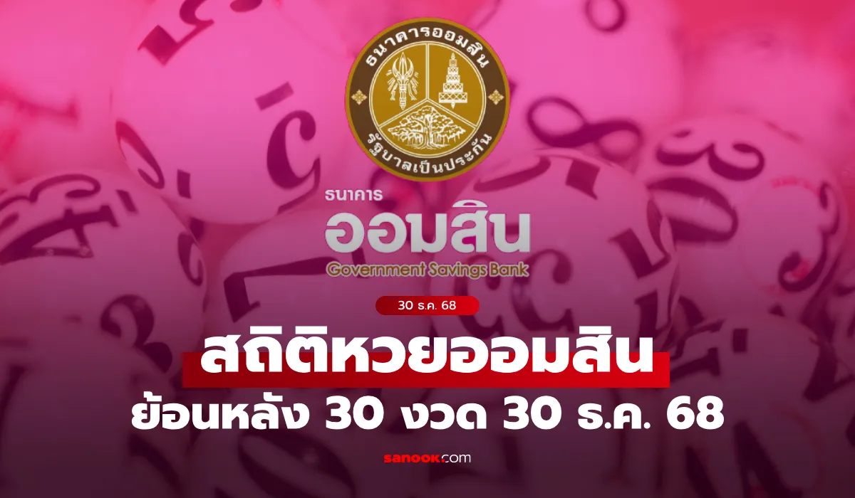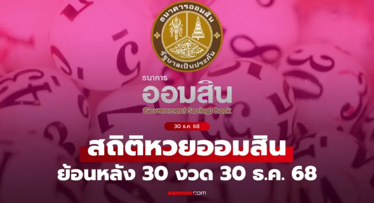 สถิติหวยออมสิน 30/12/68 หวยออมสินวันนี้ออกอะไร ย้อนหลัง 30 งวด