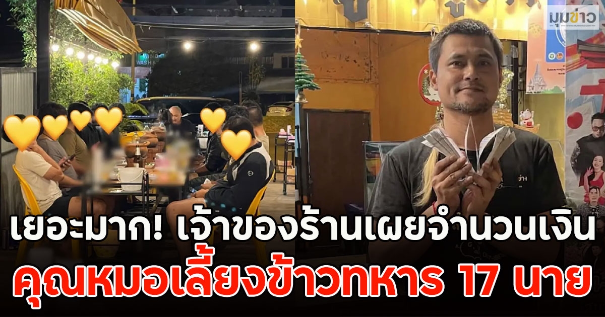 กลุ่มทหารต่างรู้สึกตกใจและเกรงใจ เนื่องจากสั่งอาหารไปค่อนข้างมาก คิดเป็นค่าใช้จ่ายรวมเกือบ 5,000 บาท จึงกังวลว่าคุณหมอจะลำบากหรือไม่ แต่เมื่อทราบถึงความตั้งใจจริง ทุกคนต่างรู้สึกซาบซึ้งก่อนเดินทางกลับ ทหารทั้ง 17 นาย ได้กล่าวขอบคุณเจ้าของร้าน และยังเดินเรียงแถวเข้าไปกล่าวขอบคุณคุณหมอและภรรยาที่นั่งอยู่โต๊ะใกล้เคียง อีกด้วย