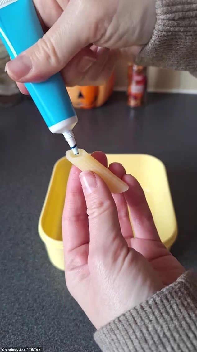 คริสซี่แชร์แผนการเอาคืนผ่าน TikTok โดยเริ่มจากแผนแรก เธอทำเมนูพาสต้าเพนเน่ซอสมะเขือเทศโรยชีสที่ดูน่ากินเหมือนปกติ แต่ภายในเส้นพาสต้านั้น เธอแอบฉีด “สีผสมอาหาร” แบบเจล ทั้งสีชมพู ม่วง และฟ้า เข้าไป