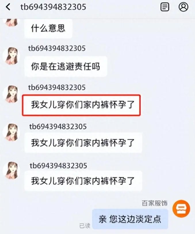 ภาพหน้าจอแชทระหว่างฝ่ายบริการลูกค้าของเถาเป่า (Taobao) เว็บไซต์สั่งซื้อสินค้าออนไลน์ที่ใหญ่ที่สุดในประเทศจีน กำลังได้รับความสนใจอย่างมากในโลกออนไลน์ เมื่อมีลูกค้าร้องเรียนเข้ามาโดยอ้างว่า ลูกสาวของเธอ “ตั้งท้อง” หลังจากสวมใส่สวมใส่ชุดชั้นในที่เธอซื้อไปให้ระยะหนึ่ง