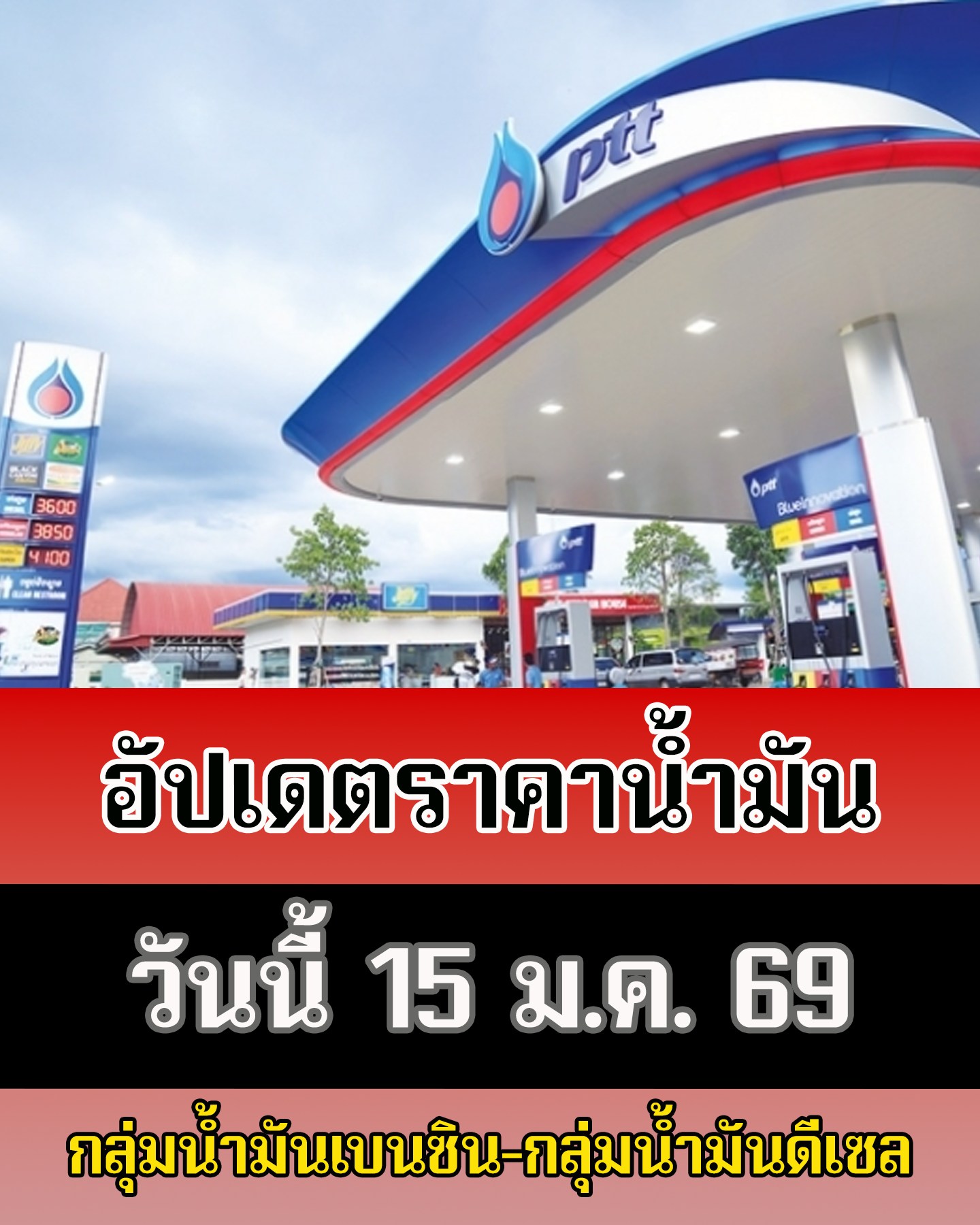 15 ม.ค. 2569 เวลา 08:21 น.ราคาน้ำมัน 15 ม.ค. 69 ราคาน้ำมันล่าสุด ราคาน้ำมันเบนซิน ราคาน้ำมันแก๊สโซฮอล์ ราคาน้ำมันดีเซล ราคาน้ำมันทุกชนิด จาก ปั๊มน้ำมัน ปตท. , บางจาก , เชลล์ (Shell) และ PT มีดังนี้