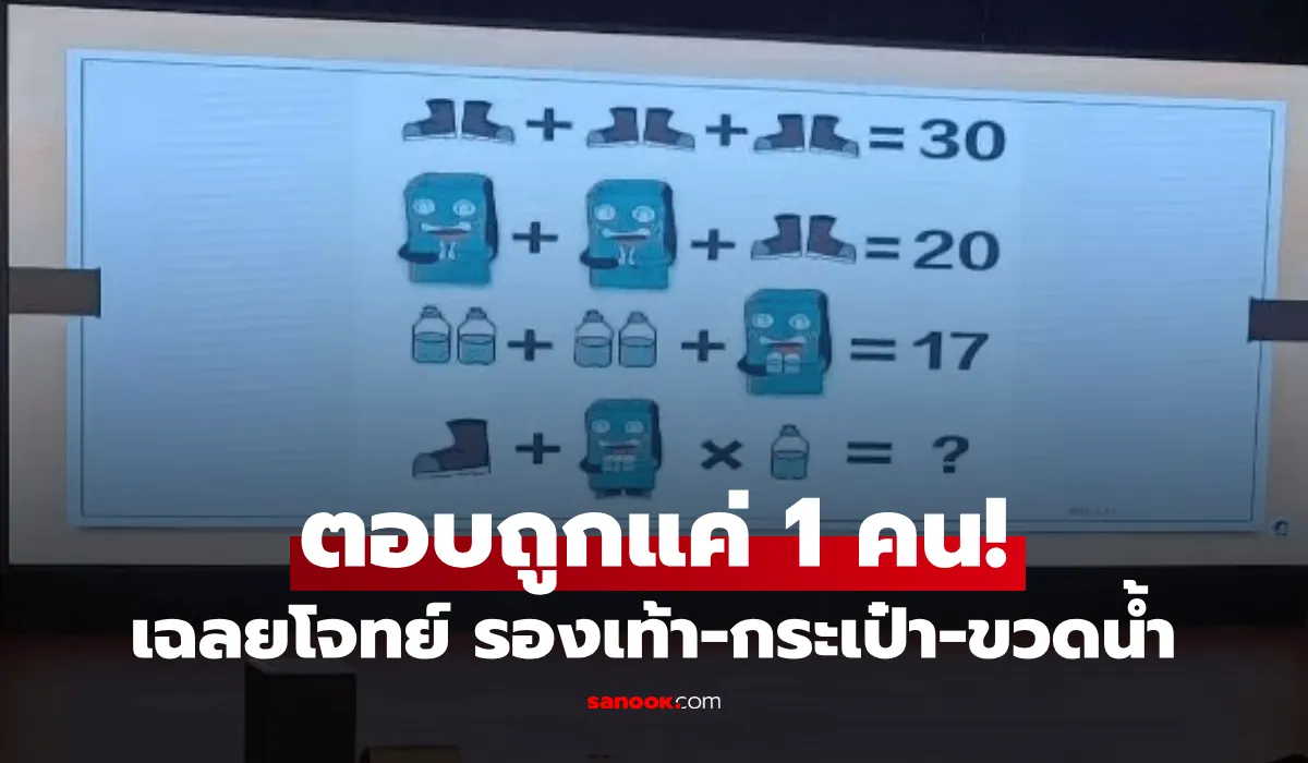 ตอบถูกแค่คนเดียว?! เฉลยโจทย์เลขไวรัล “รองเท้า-กระเป๋า-ขวดน้ำ” ที่ทำผู้ใหญ่ตายเรียบ!!