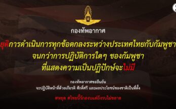“กองทัพอากาศไทย” ประกาศยุติการดำเนินการทุกข้อตกลงกับ”กัมพูชา” ขอยึดเกียรติ ศักดิ์ศรี และ ผลประโยชน์ของชาติเป็นที่ตั้ง